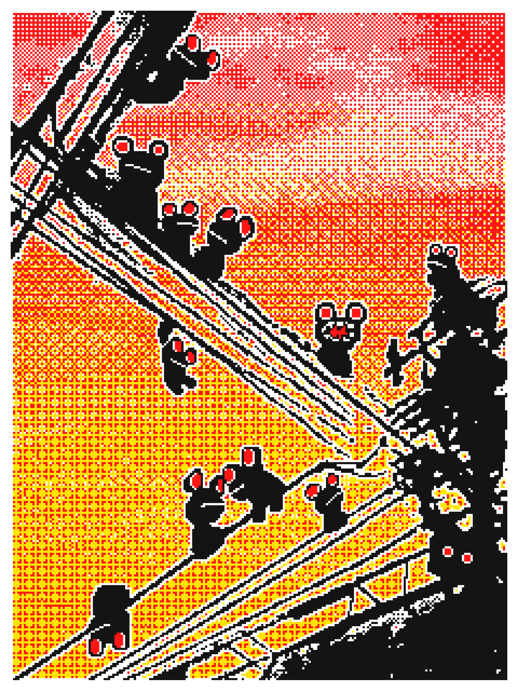 8x6 in print of 'crows' by LAS FROGAS, printed on uncoated heavyweight cover paper.
